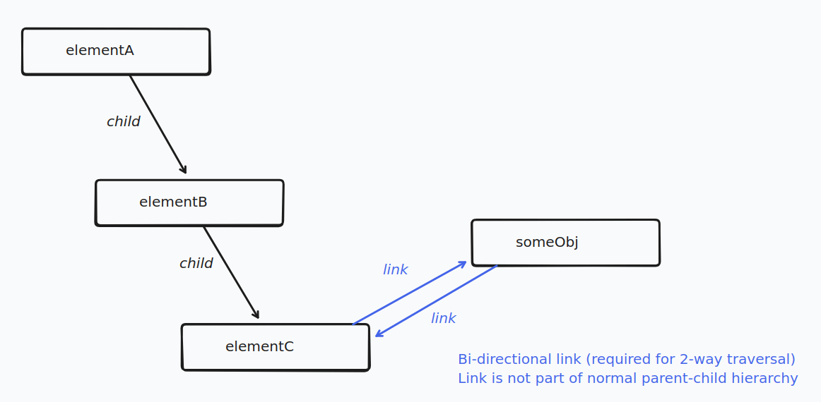 So if I want bi-directional relations, I would add the hyperlink part to each elementC and someObject with knowledge that displays the double-ended nature of the hyperlink (supply and goal could be reversed relying on if the hyperlink is on elementC or on someObject). An instance of that is within the Flecs repo right here: LINK
