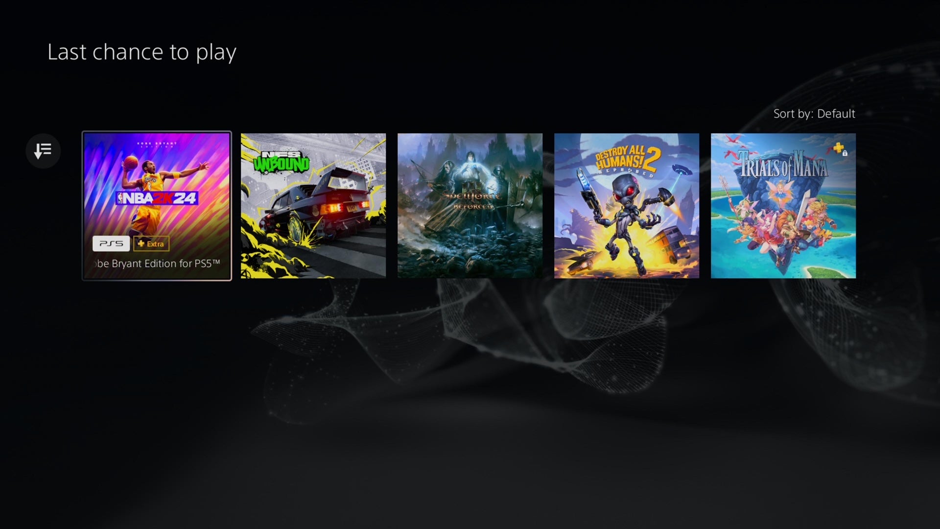 5 video games are actually within the ‘Final likelihood to play’ assortment on Sony’s PlayStation Plus catalogue: NBA 2K24 Kobe Bryant Version, Want for Pace Unbound, SpellForce 3 Reforced, Destroy All People! 2 – Reprobed, and Trials of Mana.
